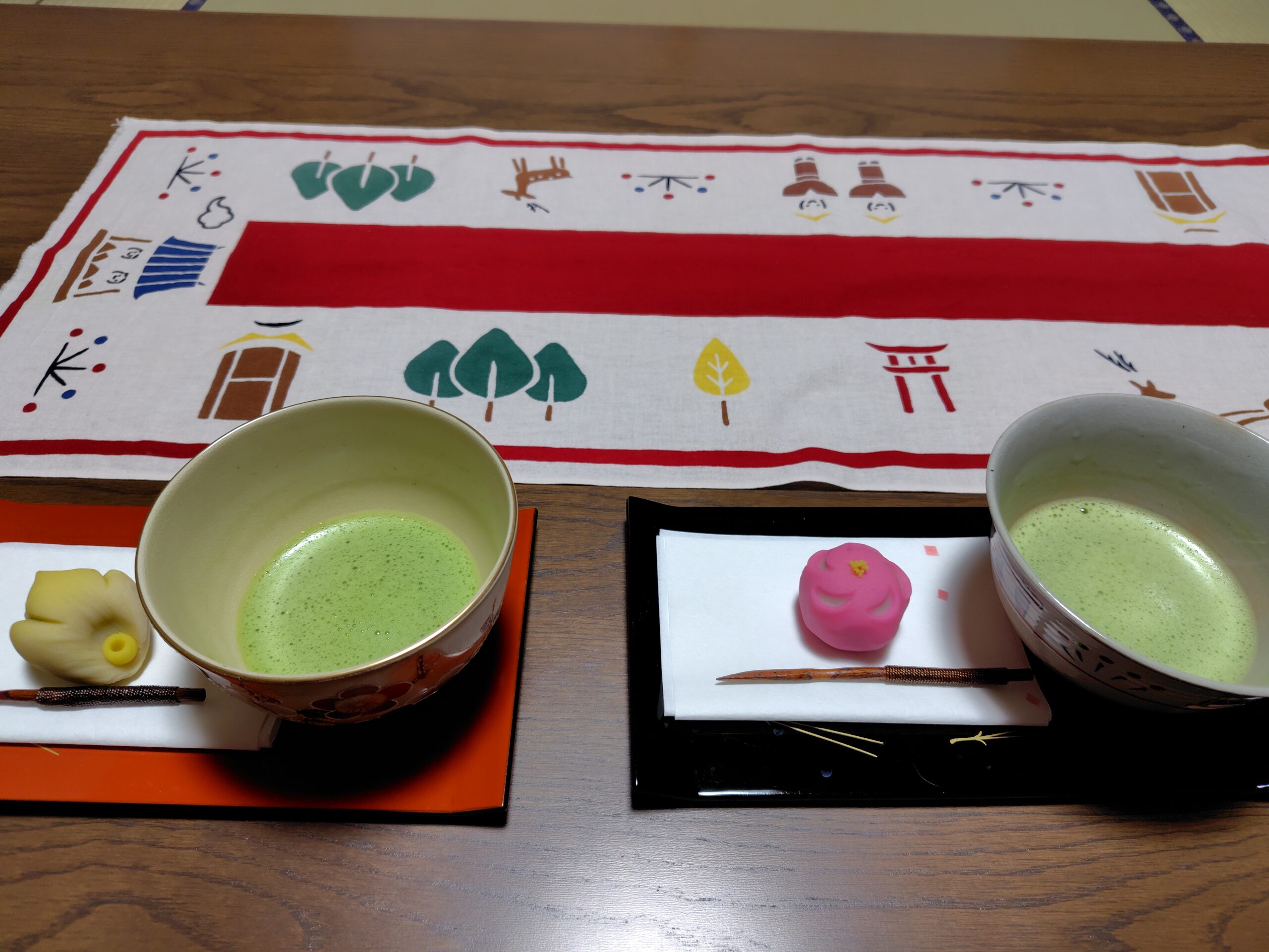 食後にはホストが茶道のお点前で皆様をおもてなしします。リラックスして日本の和菓子と抹茶をお楽しみください。🌸🍵🎍